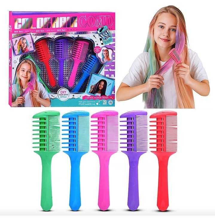 Одноразовый окрашивающий гребень с цветными мелками для волос, 5 оттенков.