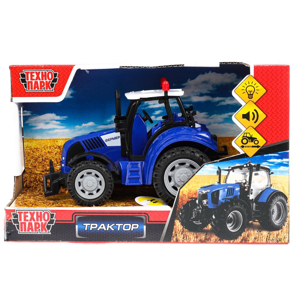 Модель пластик свет-звук ТРАКТОР 15 см, подвижные детали,инерция. кор. Технопарк 1901A101-R-BLUE (96)