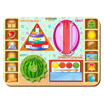 Бизиборд - обучающий планшет, который направлен на развитие важных качеств ребенка: мелкой моторики, логического мышления. На планшете имеются замочек с бегунком, разноцветная липучка, шнуровка и крутящаяся шестеренка. Кроме того, бизиборд позволит наглядно объяснить вашему ребенку разницу между геометрическими фигурами, рассказать где какая фигура встречается в жизни.