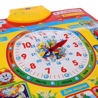 Полезная «база» для обучения ребёнка в виде говорящего плаката. Преподнесённую в визуальном и звуковом форматах информацию ребёнку будет проще усвоить и запомнить. Малыш с удовольствием будет нажимать на разнообразные кнопки и в лёгкой игровой форме знакомиться с временем суток, временами года, днями недели и распорядком дня.