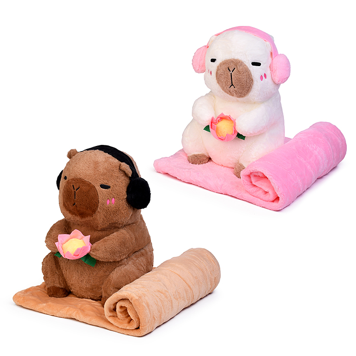 • Размер:игрушки: 26х21х38 см. • Глаза и нос прошиты. • В комплекте плед: 100х170 см. • Материалы: текстиль, полиэфирное волокно. • Соответствует требованиям безопасности продукции. • Возраст: от 3-х лет.