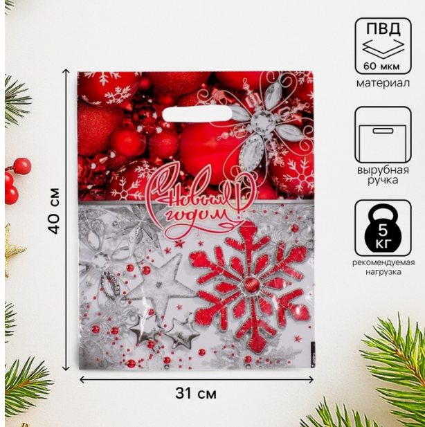 Пакет "Ледяной бисер", полиэтиленовый с вырубной ручкой, 31х40 см, 60 мкм 2737879