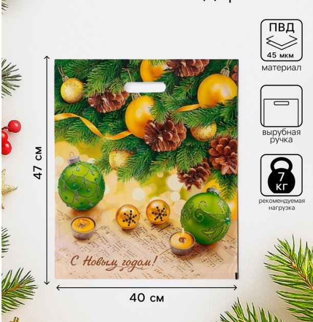 Пакет "Новогодняя увертюра", полиэтиленовый с вырубной ручкой, 47х40 см, 45 мкм 4455023