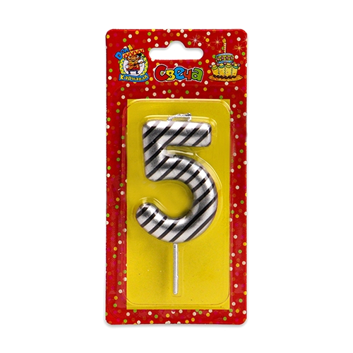 Свеча для торта Цифра 5 серебряная в полоску С-2524