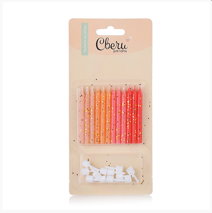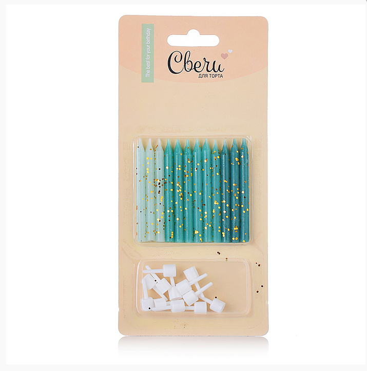 • Свечи Бирюзовый микс, с блестками, 0,5*6 + 1 см, 12 шт. с держат.803200