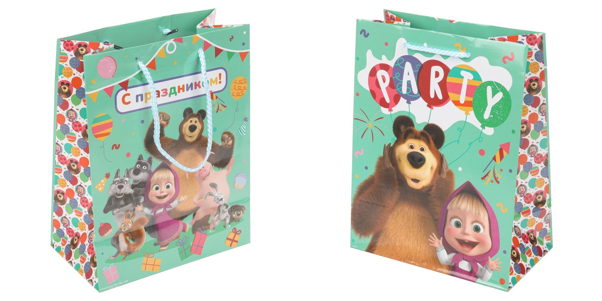 Подарочный глянцевый пакет «Маша и Медведь» станет отличным дополнением к вашему подарку и сделает его незабываемым: