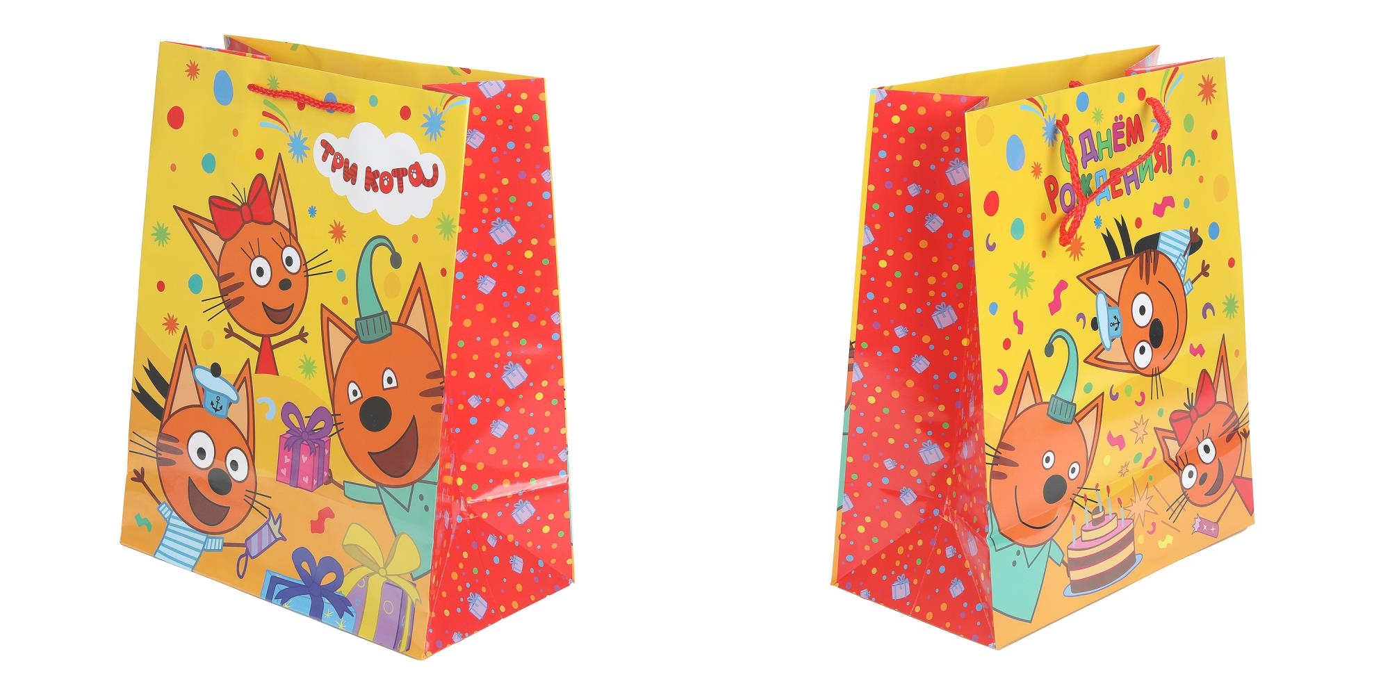 Подарочный глянцевый пакет «Три кота» станет отличным дополнением к вашему подарку и сделает его незабываемым:
