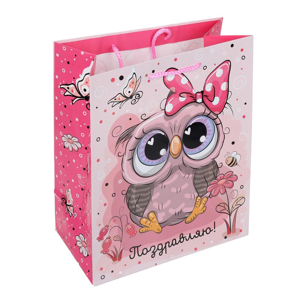 Пакет подарочный двусторонний l,поздравляю,сова,190 гр/м2 ЧУДО ПРАЗДНИК P2SL-113303-AN