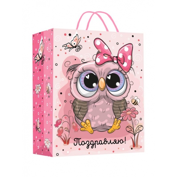 Пакет подарочный глянцевый xl,поздравляю,сова,190 гр/м2 ЧУДО ПРАЗДНИК P2SXL-113317-HB