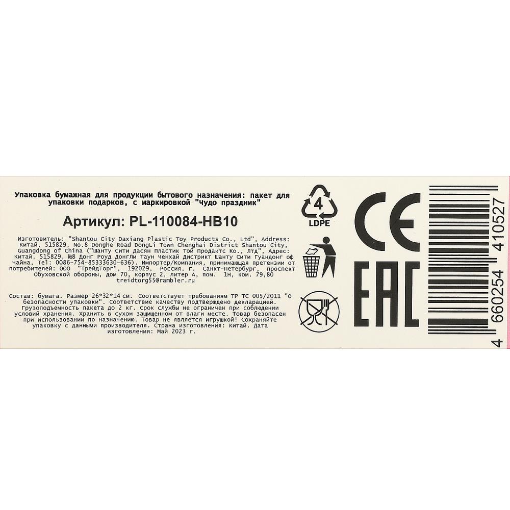 Пакет подарочный МАТОВЫЙ l, 26*32*14 см ЧУДО ПРАЗДНИК PL-110084-HB10