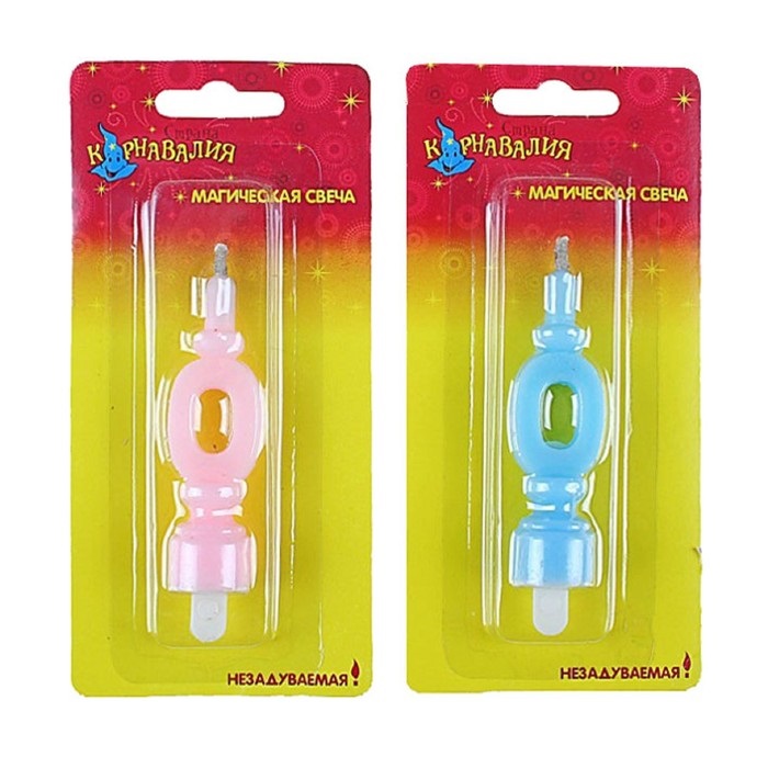 Свеча восковая для торта незадуваемая "Волшебство" цифра 0, цвета МИКС