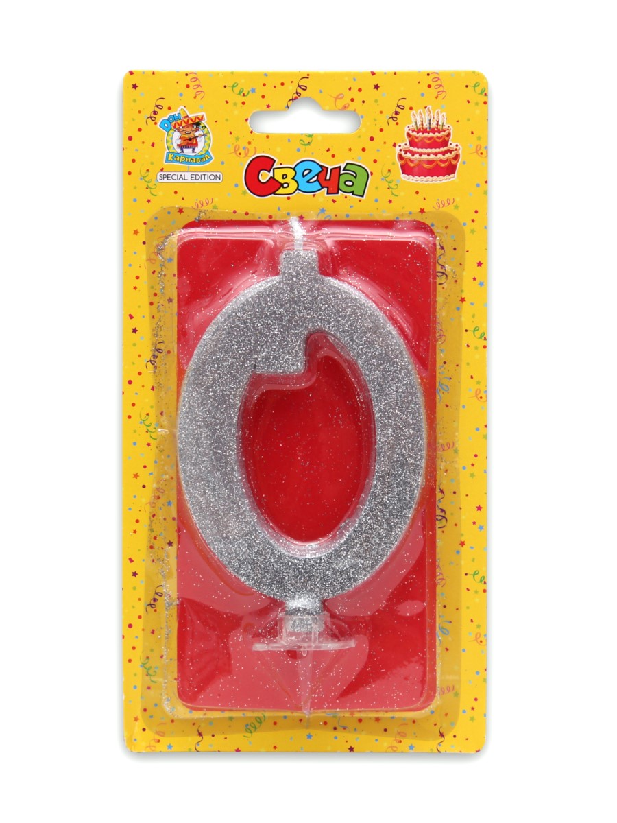 Свеча для торта Цифра 0 Серебряный глиттер С-1828