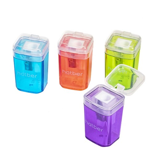 Удобная пластиковая точилка с закрывающейся крышкой, отверстием для заточки карандашей стандартного диаметра до 8 мм и контейнером для стружки.