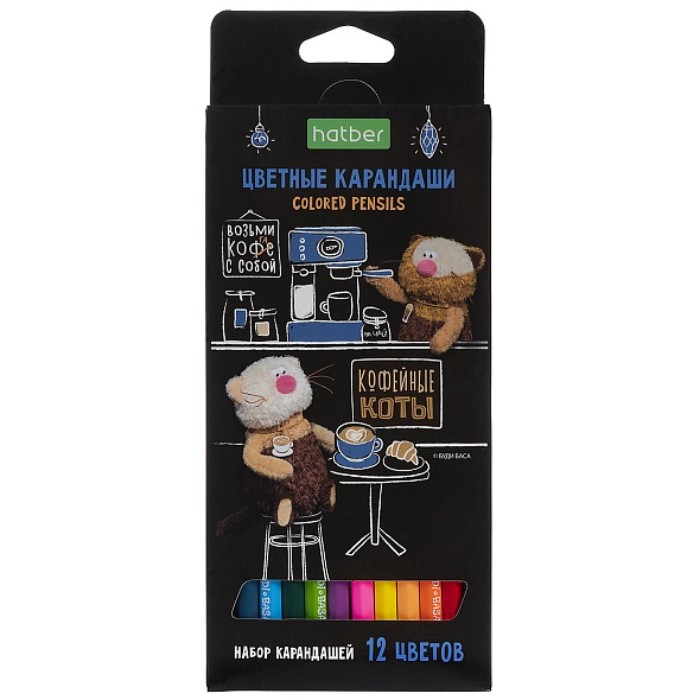 Цв.каранд.12цв. Hatber ECO "Кофейные коты", заточ., шестигран., к/у, е/п CS_091071