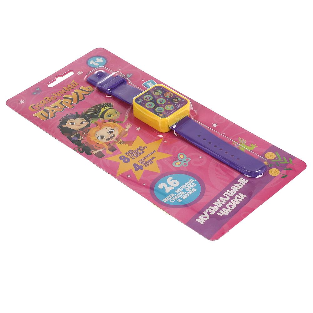 Музыкальные часики «Сказочный патруль» ТМ «УМка» станут прекрасным подарком для ребёнка: - 6 песен из м/ф: «Звезда», «Знакомство», «Город Мышкин», «Отражает небо», «Заставка», «Тоска» - 2 мелодии на песни из м/ф: «Звезда», «Отражает небо» - 4 стихотворения про любимых героинь - звуки телефона и фотокамеры - разнообразные фразы - яркий дизайн - удобный ремешок Музыкальные часики сделаны по мотивам известного мультсериала, поэтому придутся по вкусу его поклонникам. К тому же, это не простые часы: нажимая на кнопки, можно послушать любимые песни из мультика и забавные звуки. Музыкальные часы ТМ «УМка» развивают: - тактильные навыки - мелкую моторику - музыкальный слух - память Размер: 4 х 23 х 2 см. Материалы: пластмасса + металл. Часы работают от 3-х батареек типа LR44. Рекомендовано детям от 1 года.