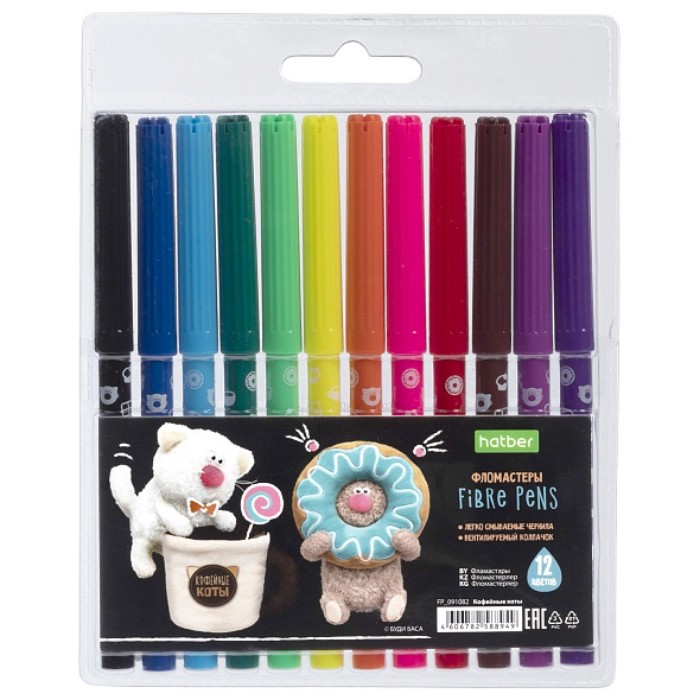 Фломастеры 12цв. Hatber ECO "Кофейные коты", блистер, е/п
