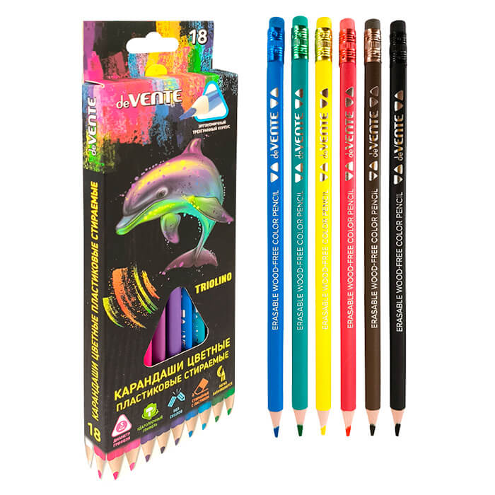 Цв.каранд.18цв. deVente "Triolino. Erase" 2М, пластик, трехгранные., заточ., с ластиком, к/у 5023550