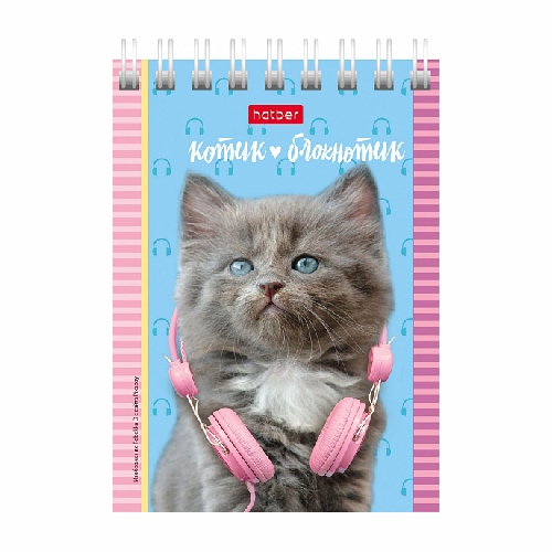 Блокнот А7 40л.кл.гребень,карт.обл.Hatber, "Котята" 40Б7В1гр