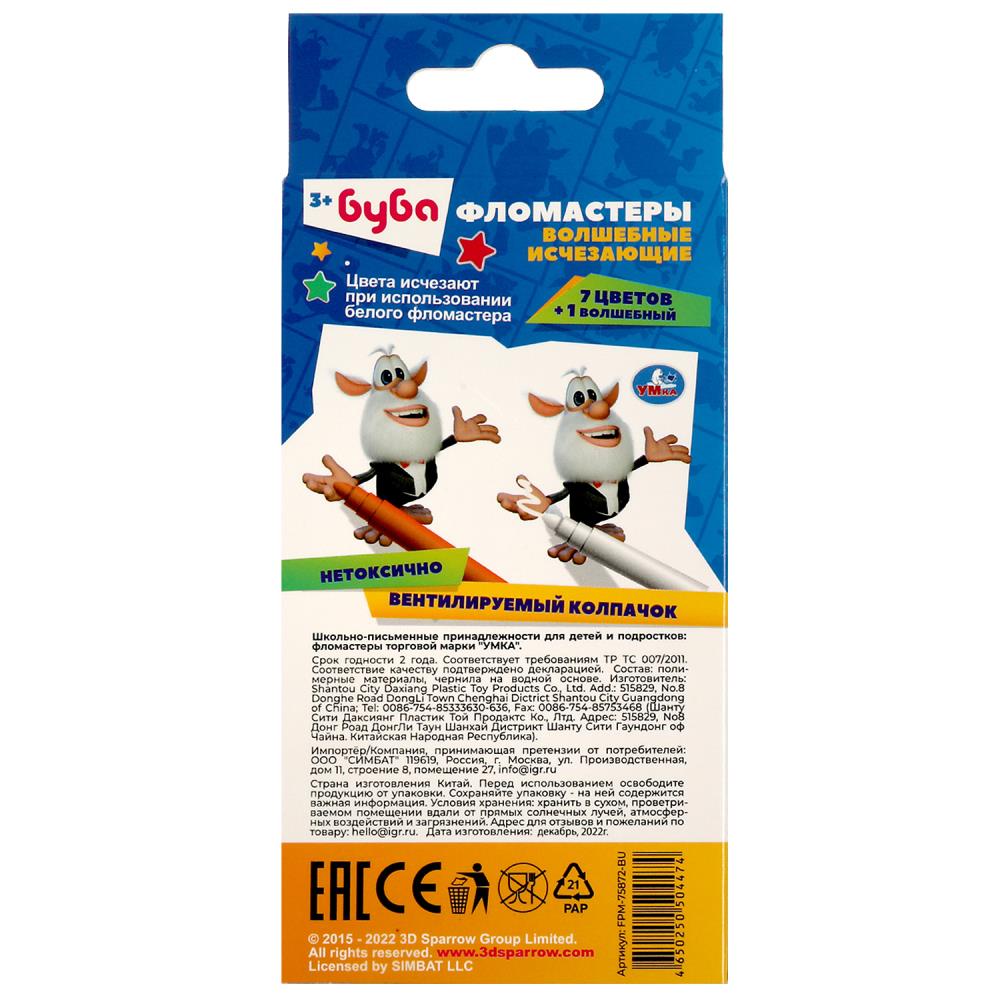 Фломастеры УМка Волшебные исчезающие Буба FPM-75872-BU
