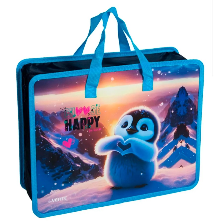 Папка д/тетр. 1отдел.на молнии с ручками А4 deVente "Happy Pinguin", пластик, 400мкм, с текст.расшир. 10см 8057506