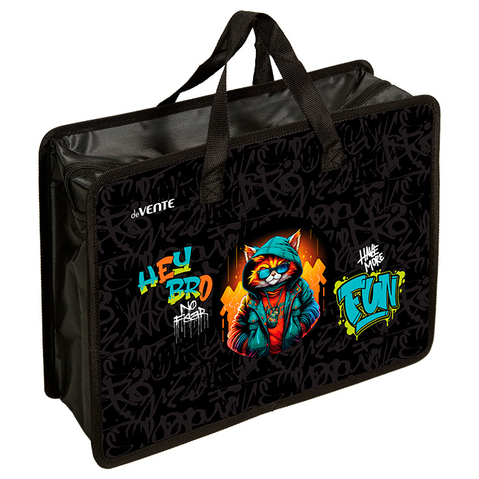 Папка для тетрадей, ИЗО и технологии "deVENTE. Hey Bro" A4 (33,5x26x10 см) с текстильным расширением 10 см, на молнии сверху, пластик 400 мкм, текстильные ручки, в пластиковом пакете