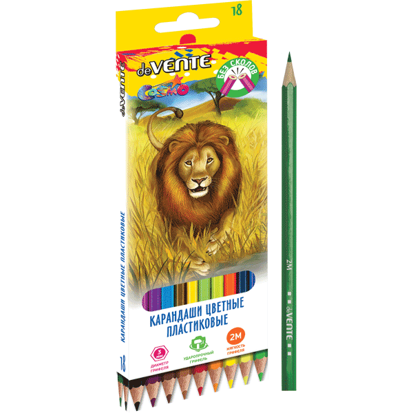 Карандаши цветные пластиковые "deVENTE. Животный мир" 18 цветов, 2М, диаметр грифеля 3 мм, шестигранные, пластиковый корпус, в картонной коробке