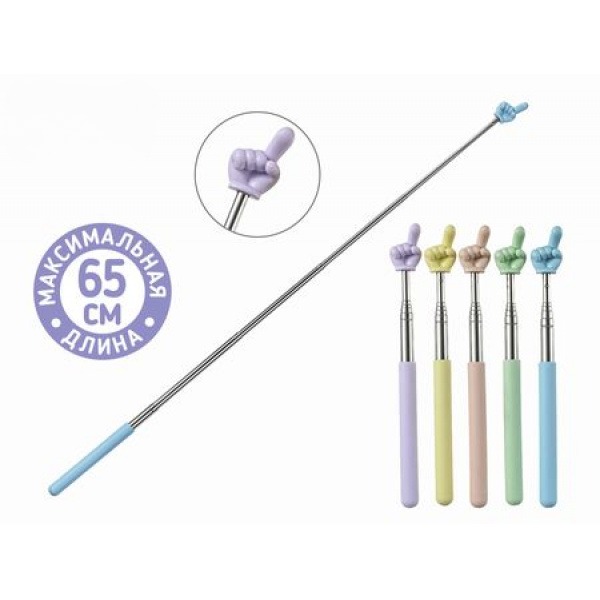 Указка телескопическая с пальцем, макс. длина 65 см, 5 цветов в ассортименте, ОПП-упаковка M-20412