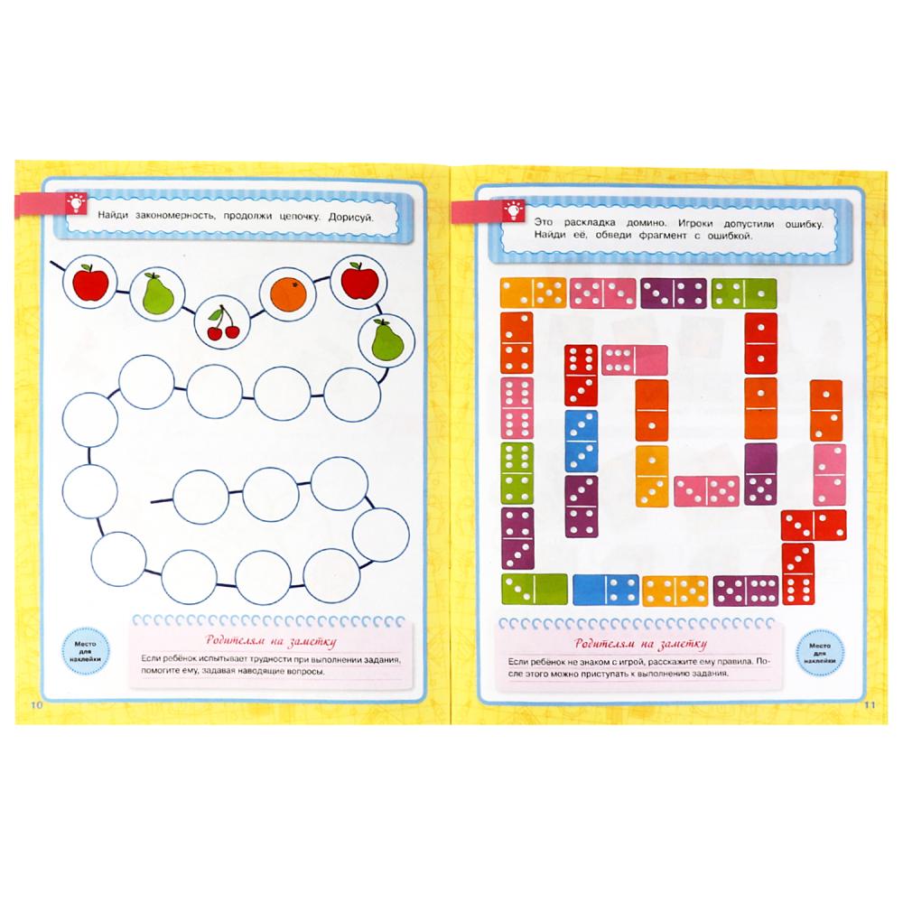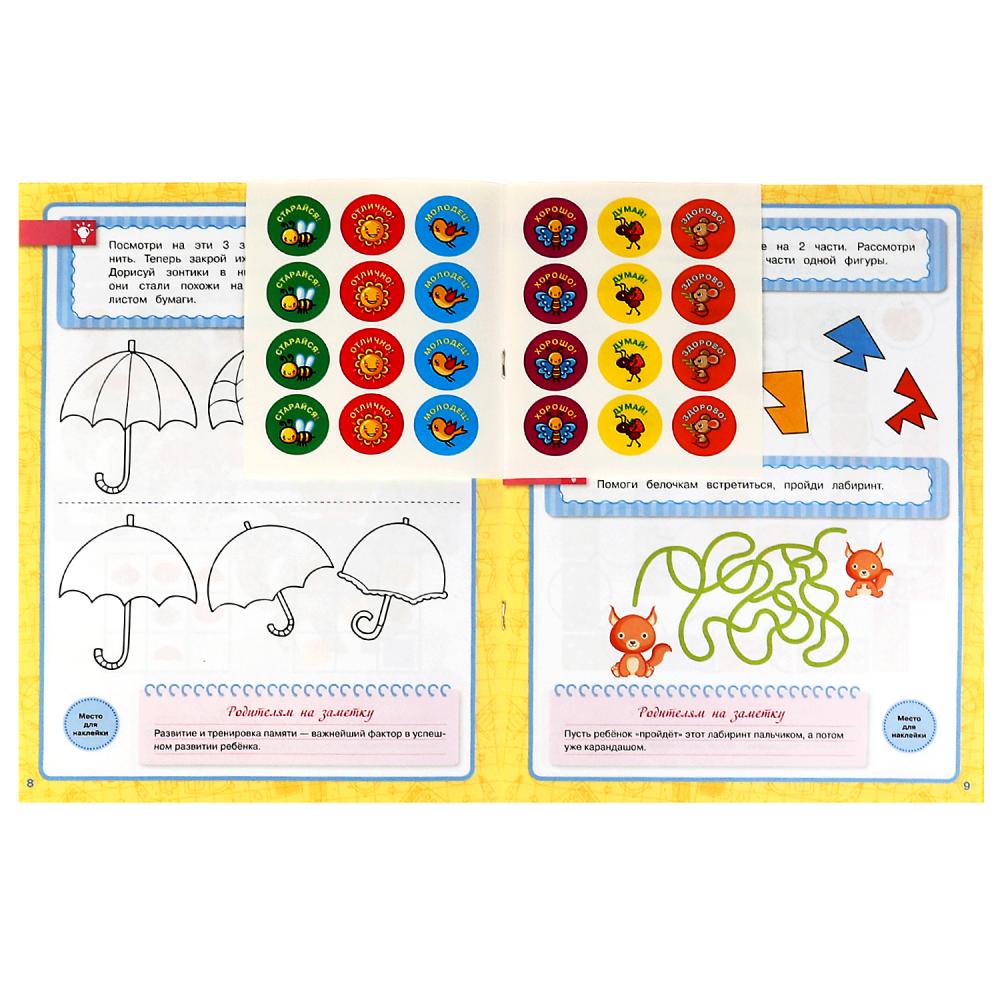 Рабочая тетрадь с поощрительными наклейками «Годовой курс, 6-7 лет. Память, внимание, логика» из серии «Школа Жуковой» ТМ «УМка» станет отличным помощником для родителей в развитии ребёнка: - соответствует ФГОС - красочные иллюстрации - интересные задания - поощрительные наклейки - удобный формат Данная тетрадь содержит комплекс упражнений, направленный на развитие у детей памяти, внимания и логического мышления. При выполнении заданий ребёнку придётся проявлять смекалку, размышлять, придумывать варианты решения задач. Для эффективного обучения достаточно заниматься с маленьким любознайкой по 15 минут в день - главное, поддерживать его интерес и хвалить за успехи, в чём отлично помогут поощрительные наклейки. Занятия по учебному пособию ТМ «УМка» будут также способствовать развитию: - моторики - сенсорики - мышления - речи Объём: 16 стр. Формат: 214 х 290 мм. Материал: офсетная бумага + самоклеящаяся бумага. Рекомендовано детям шести-семи лет.