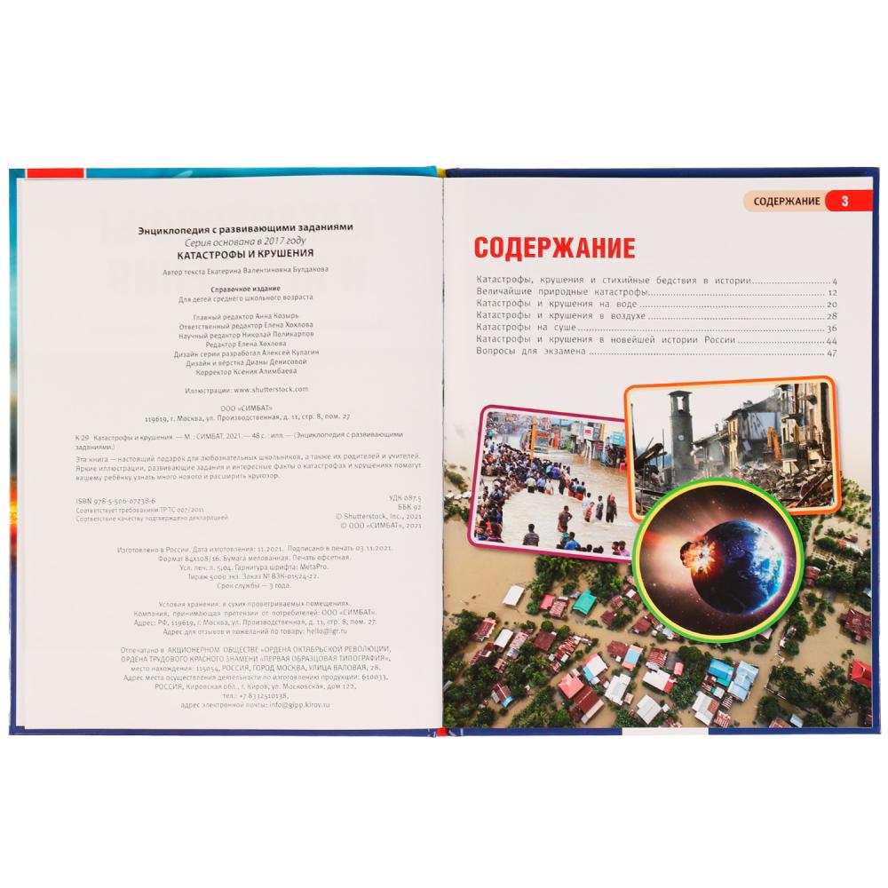 Энциклопедия с развивающими заданиями «Катастрофы и крушения» ТМ «УМка» обязательно понравится маленьким любознайкам: - соответствует ФГОС - проверено научными консультантами - одобрено педагогами - рекомендовано для внеклассного чтения - развивающие задания - красочные иллюстрации - твёрдый переплёт - диплом в подарок На протяжении всей истории человечества происходило немало катастроф, крушений, стихийных бедствий, которые повлияли на жизни людей. О наиболее ярких из них юный читатель узнает из этой занимательной детской энциклопедии. Зрелищные фото и удивительные факты увлекут ребёнка и помогут ему быстро, эффективно и с удовольствием усвоить новую информацию. Чтение энциклопедии ТМ «УМка» способствует расширению кругозора и развитию: - визуального восприятия - внимания - памяти - усидчивости Объём: 48 стр. Формат: 197 х 255 мм (А4). Материал: офсетная бумага, мелованная. Рекомендовано детям младшего школьного возраста.