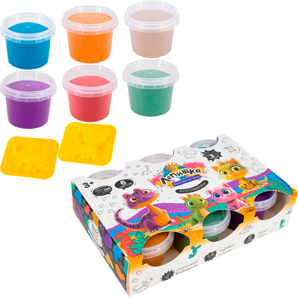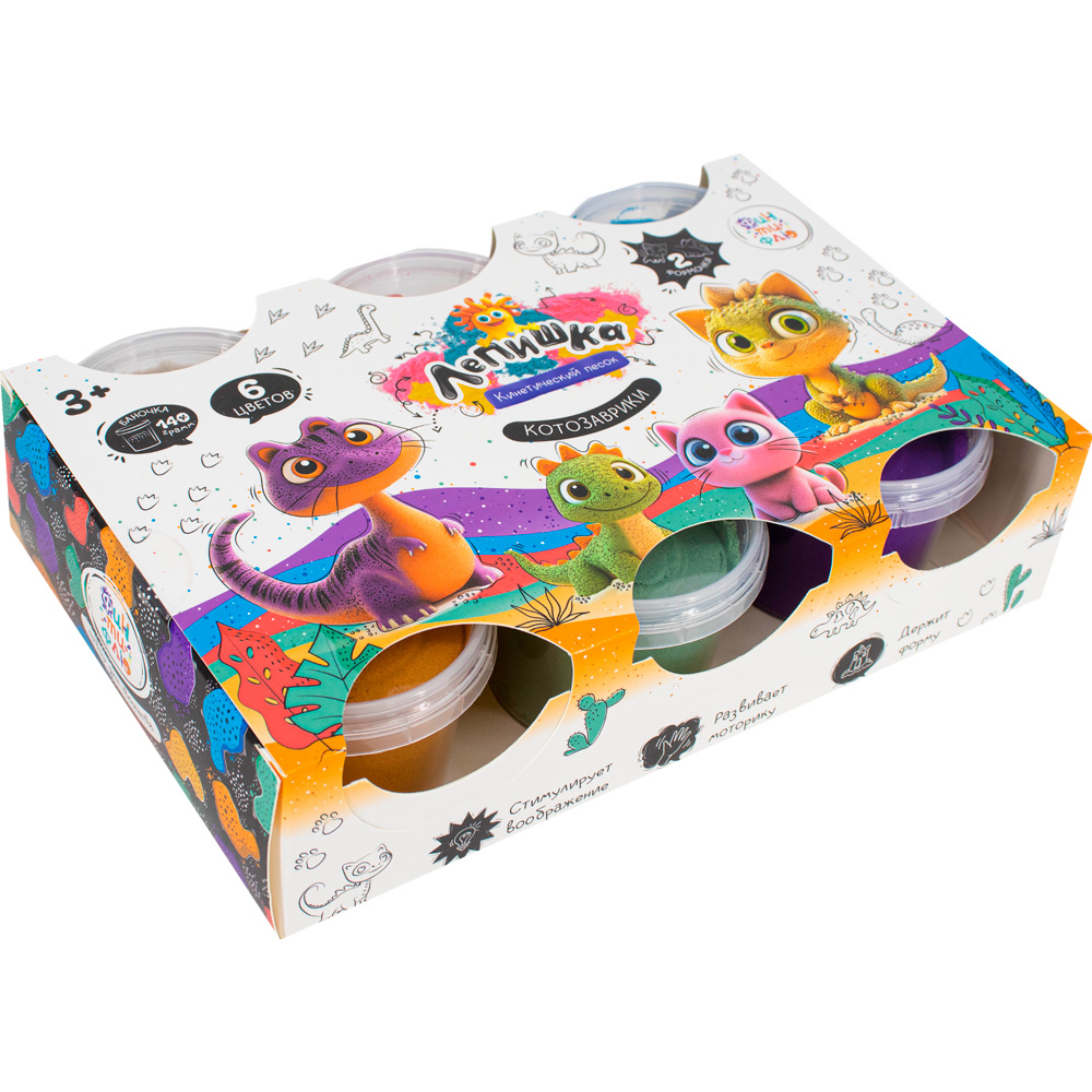 Набор Для Творчества Кинетический песок 6 цв "Лепишка" Котозаврики Фин-ти-Флю 444