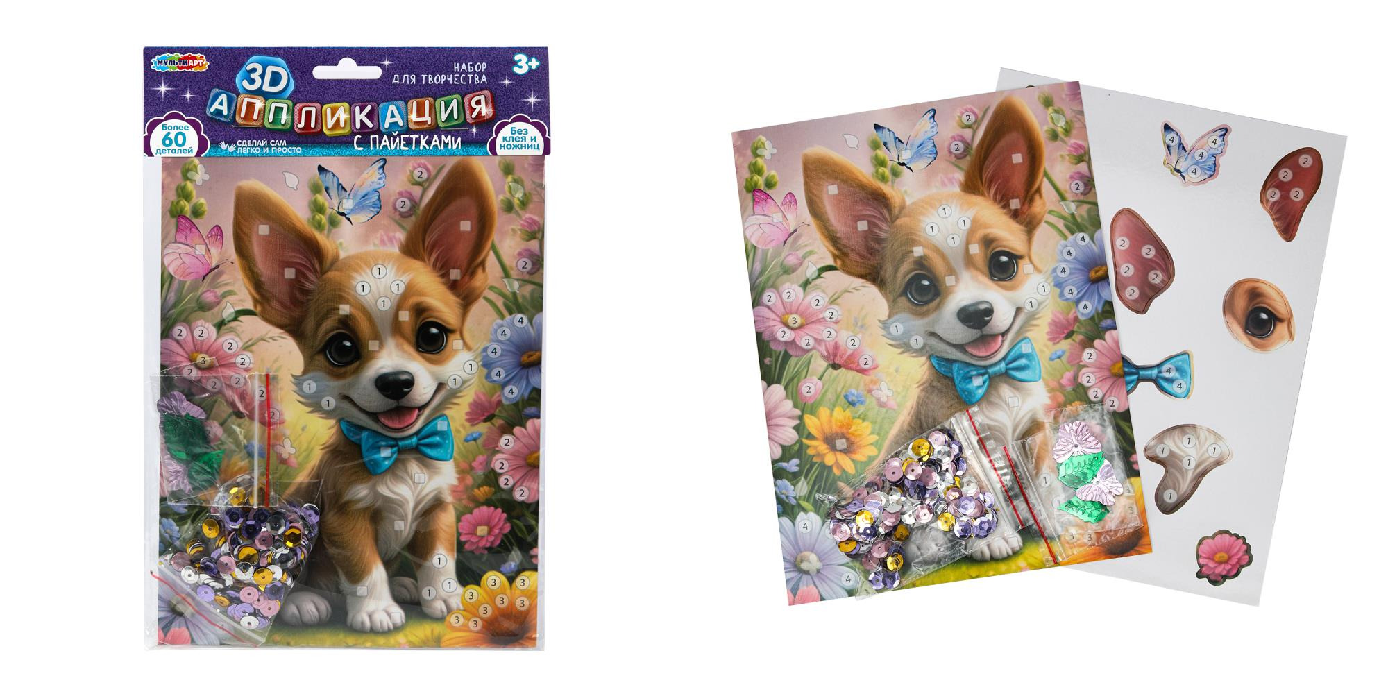 Набор для творчества - аппликация пайетками 3D «Щенок» отличный подарок для вашего ребёнка, который будет способствовать развитию его творческих способностей.