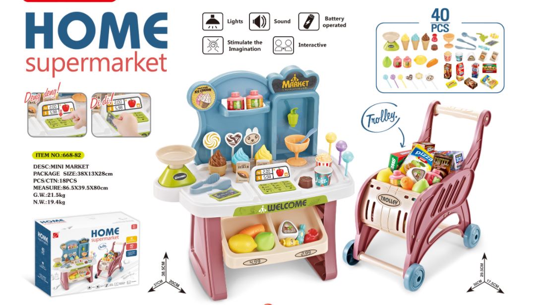 Все дети обожают играть в магазин. А с этим игровым набором игра будет по настоящему интересной. В комплект входят игрушечный прилавок с вывеской и полочками, весы, касса, множество сортов мороженого, конфеты, капкейки на палочке и другие сладости, а также фрукты, овощи, попкорн, напитки и другие продукты. Еще в наборе вазочка для мороженого с ложечкой, щипцы и игрушечная кредитная карта. При нажатии на кнопки на панели кассы звучит звуковой сигнал и загорается световой индикатор, при проведении картой на кассе также звучит звуковой сигнал и загорается световой индикатор. Это добавляет особую реалистичность игре. о сканером, продукты и игрушечные деньги. В собранном виде размер прилавка составляет 38 см (высота) х 37 см (ширина) х 20 см (глубина), размер тележки: 29 см (высота) х 30 см (ширина) х 18 см (глубина) Игра развивает коммуникативные навыки, фантазию, воображение, мелкую моторику, а также может помогать тренировать навыки устного счета. Размер упаковки: 38х13х28см В комплекте: 40 предметов.