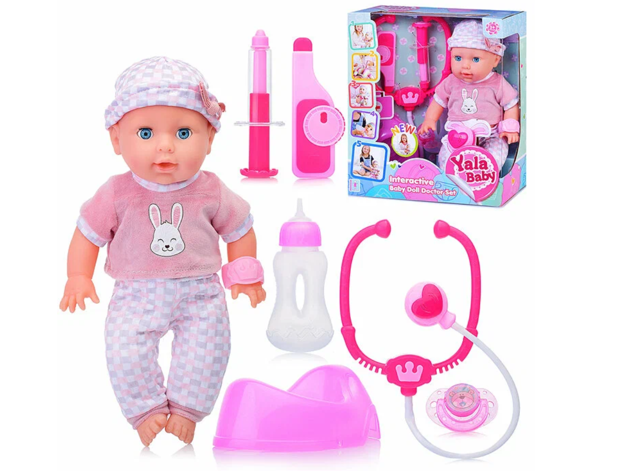 Аксессуары: пустышка, бутылочка, горшок, шприц, градусник и стетоскоп.