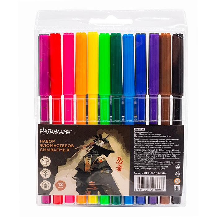 Фломастеры 12цв. Панда Рог "Ниндзя", с вент. колп., п/у, европод. 15-6590