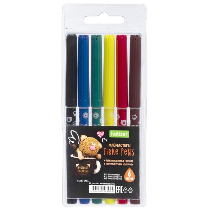 Фломастеры 6цв. Hatber ECO "Кофейные коты", блистер, е/п FP_091081