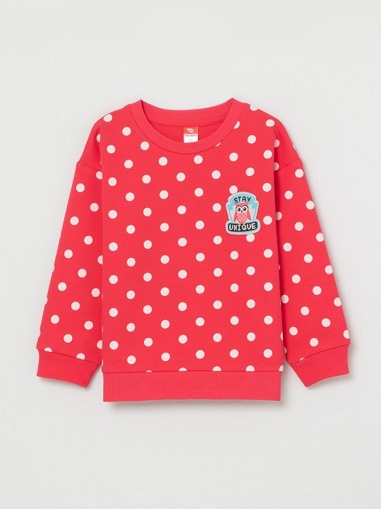 Джемпер для девочки с длинными рукавами и спущенным плечом. Горловина круглая, обработана воротником из полотна с эластаном. Рукава с манжетами по низу. Нижние срезы переда и спинки обработаны притачным поясом из полотна с эластаном. Перед джемпера декорирован жаккардовой этикеткой. Материал: Футер без начеса Состав: 100% хлопок