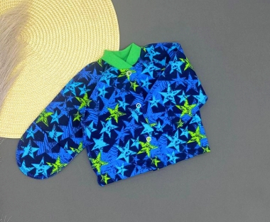 Утепленная кофточка с застежкой на кнопки спереди, с длинным рукавом-реглан и закрывающейся ручкой, без отложного воротника. Отличный повседневный вариант.
