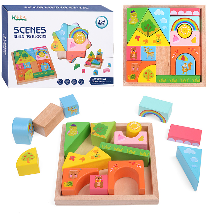 Деревянный конструкто "Яркое лето" 16 деталей для детей с 3 лет, в коробке