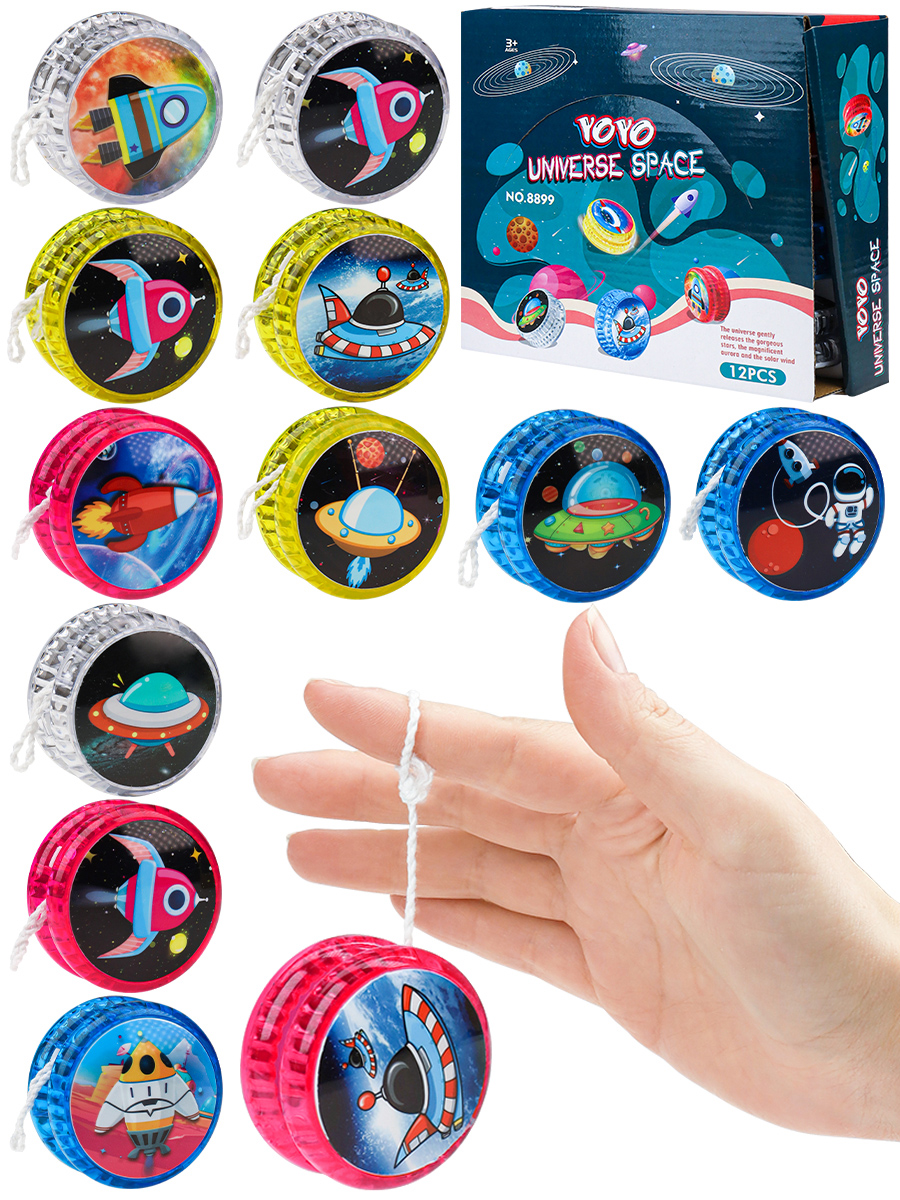 Йо-йо - это классическая игрушка, известная еще с древних времён. Она была создана в античные времена и с тех пор претерпела сильные изменения. Сегодня йо-йо представляет собой две симметричные части, соединённые между собой осью с закреплённой верёвкой. С такой игрушкой можно играть как новичкам, так и профессионалам. Йо-йо от компании "Рыжий кот" со световым эффектом не оставит вашего малыша равнодушным! Магия йо-йо поможет развивать воображение, креативность, быструю реакцию, моторику, координацию глаз и рук. Размер: 3,5*5,5 см. Материал: пластик. В шоубоксе 12 штук. Работает от 2 батареек (тип: AG3), входящих в комплект.