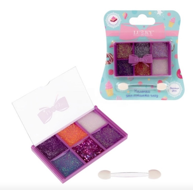 Lukky Палетка для макияжа глаз: гель-тени для век с блестками, 4,5 г, 6 цветов,бел.,аппликатор,блистер Т25297