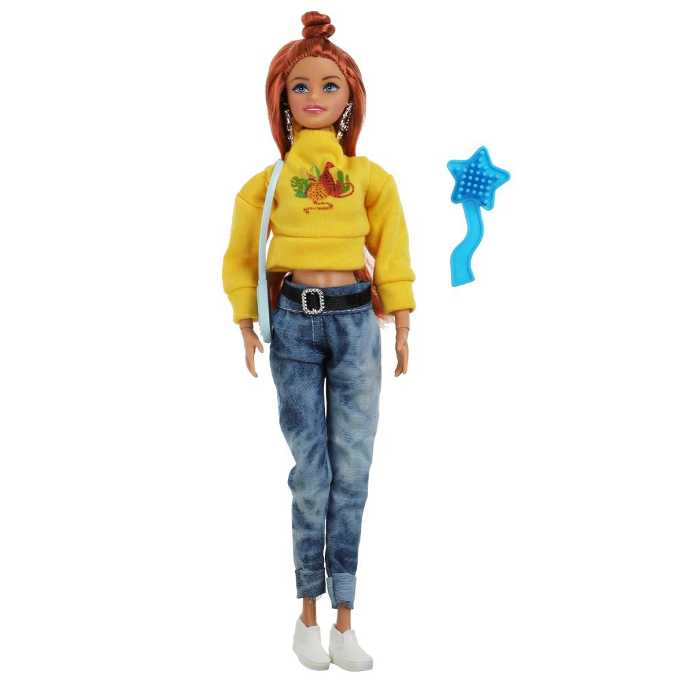 Модница-София одета в стильные джинсы с высокой талией и яркую водолазку с принтом. Образ дополняют стильные крупные серьги, модный ремень и элегантная сумочка. Одежду и аксессуары легко снять и надеть. С такой модной куклой девочке будет интересно и весело играть: благодаря тому, что руки и ноги куклы подвижны, им можно придать любое положение. У Софии длинные красивые волосы, которые хозяйка куклы сможет заплетать в разные причёски. Детально проработанный дизайн игрушки вдохновит девочку на новые игровые сюжеты.