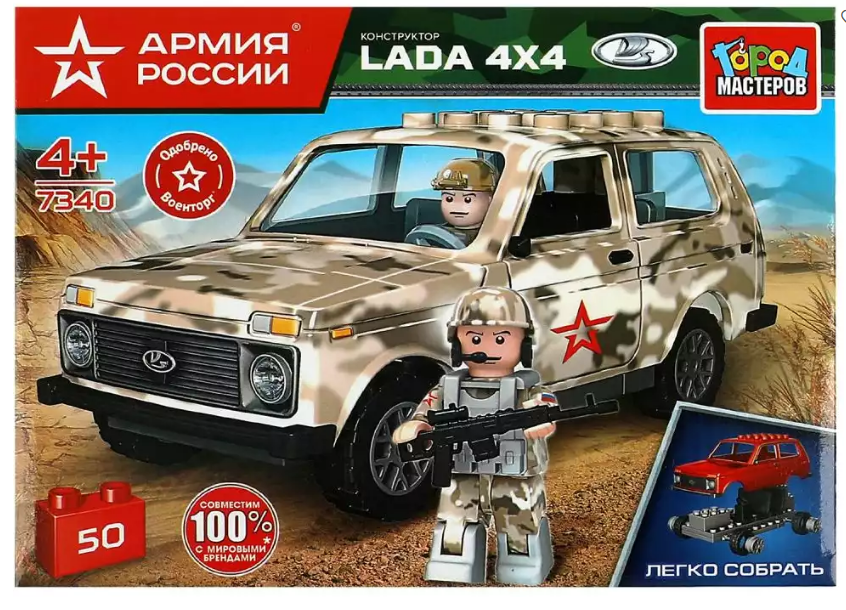 АРМИЯ РОССИИ конструктор ВОЕННАЯ LADA 4х4, 50 дет. (легко собрать) Город мастеров 7340-KK