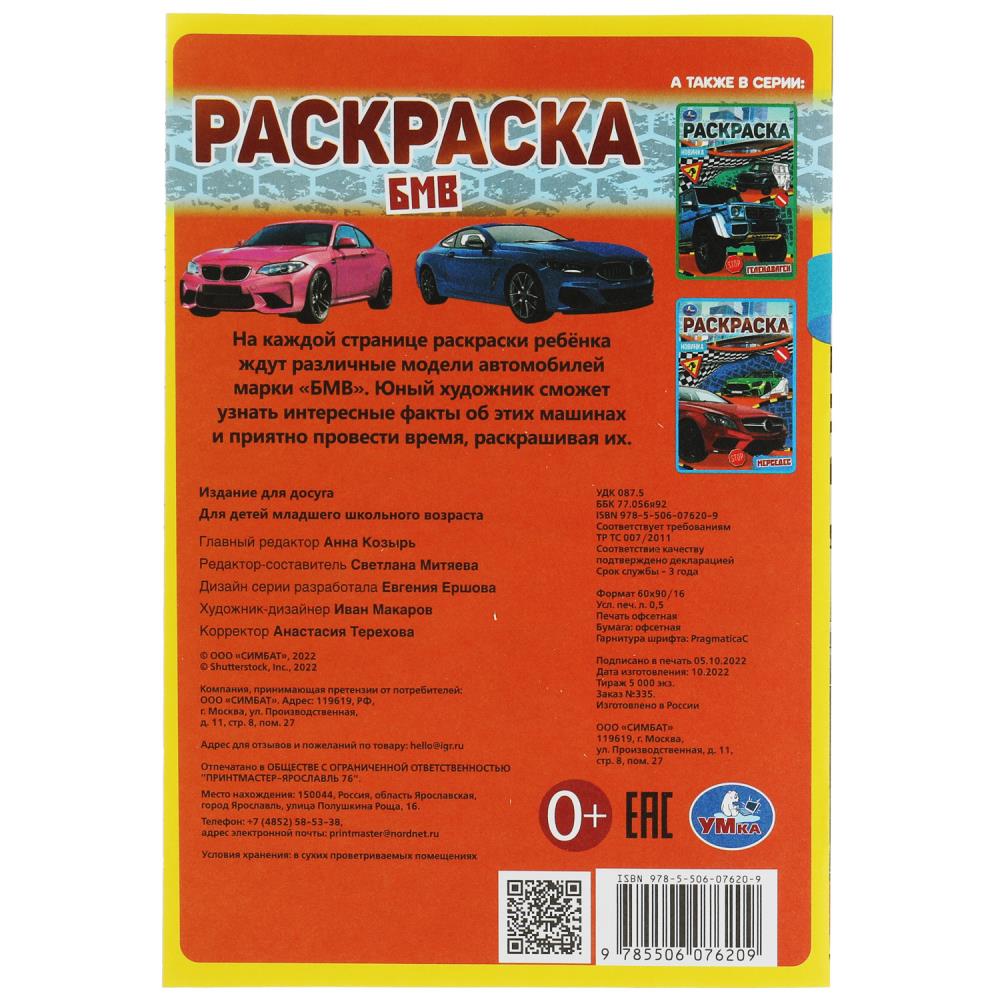 БМВ. Раскраска Малышка 16 заданий. 145х210 мм. Скрепка. 8 стр. Умка 978-5-506-07620-9
