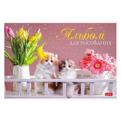 Альбом для рисования А4, 12л, Hatber "Мы любим котиков", скрепка, обложка мелованный картон 12А4В