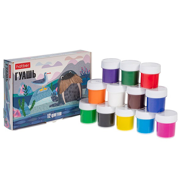 Гуашь предназначена для рисования на бумаге, картоне, дереве, холсте. Гуашь легко разбавляется водой, а плотный матовый слой быстро сохнет. Яркие насыщенные цвета и оптимально подобранная гамма прекрасно подходит для детского творчества. Набор содержит 12 цветов в баночках емкостью 20 мл. Благодаря плотно закрывающимся крышкам гуашь долго сохраняет свои свойства. Упаковка: картонная коробка с фиксирующим клапаном.