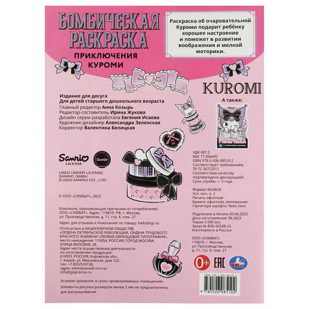 Приключения Куроми. Бомбическая раскраска. 214х290 мм. Скрепка. 16 стр. Умка 978-5-506-08510-2