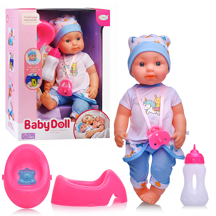 • В комплекте: бутылочка, горшок, соска, памперс.