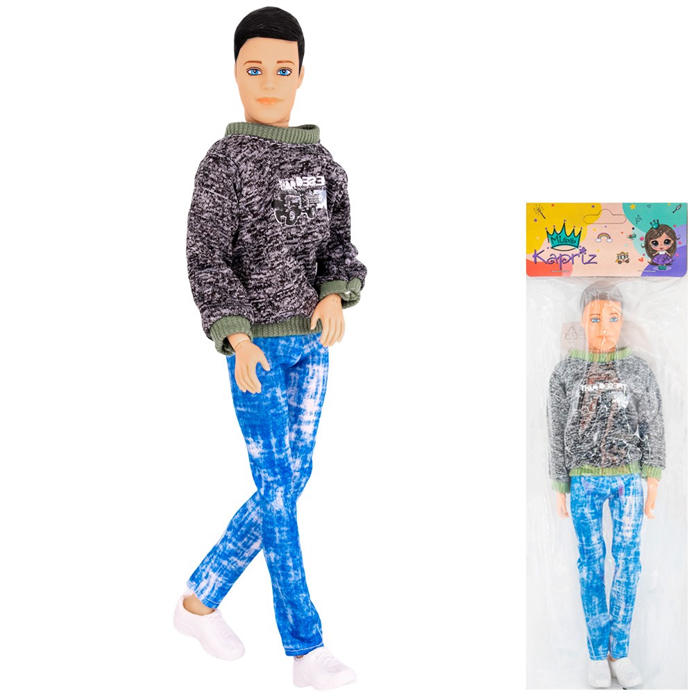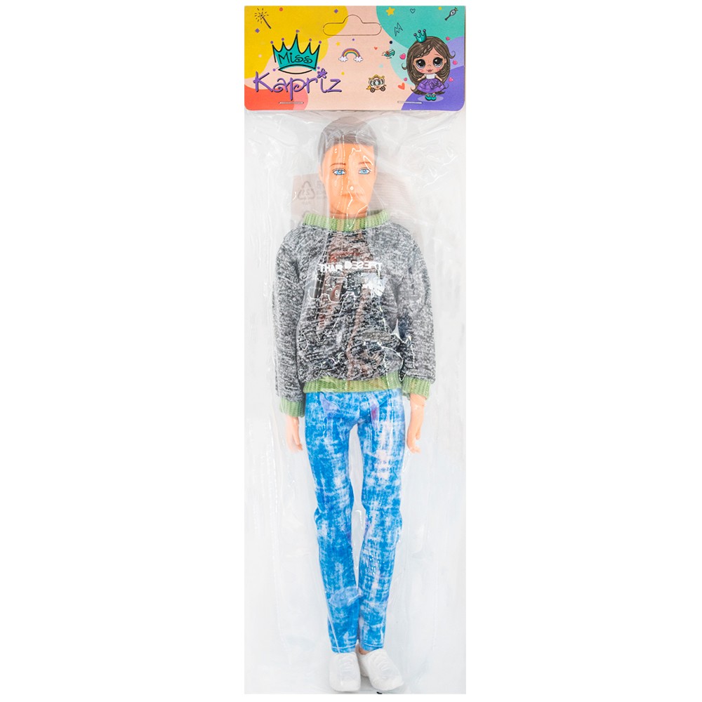 Размер упаковки: 30,2 х 11,5 х 4 см Размеры куклы: 30 х 9 х 3,5 см Упаковка: пакет с картонным хедером Функционал: игрушки для детей Вид: кукла – кен Материал: полимеры, текстиль Комплектация: кукла – 1 шт Страна происхождения бренда: КНР Возраст ребёнка: детям с 3+ лет Куклы имеют огромное значение для эмоционального и познавательного развития детей. Игра в куклы помогает детям развить воспитательные функции, творческое мышление, коммуникативные навыки, мелкую моторику рук, а также в ребенок учится выражать свои чувства и эмоции. Кукла – Кен Miss Kapriz изготавливается из высококачественных и безопасных материалов. Особенности: - кукла одета в стильную, молодежную одежду; - куклу можно переодевать; - подвижные руки (плечи, запястья) и ноги (коленные суставы), поворот головы.
