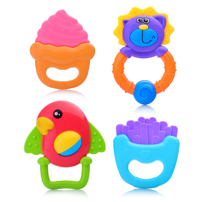 Длина погремушек: 8 – 11 см. Материалы: пластмасса, полимерные материалы. Соответствует требованиям безопасности продукции. Для детей от 3-х лет.