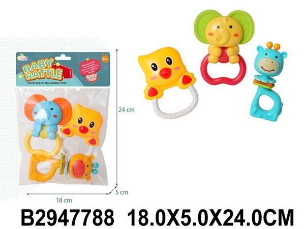 Набор погремушек "Милые животные" 3 шт. в/п 18*24*5 см 2947788